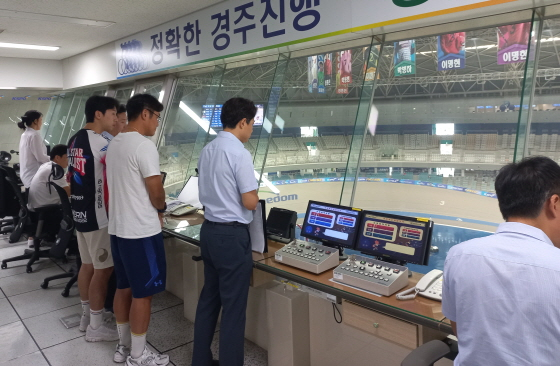 이날 프로그램에는 문희덕(13기 S1 김포)과 김우영(25기 S2 수성) 선수가 참여했으며 심판장으로부터 심판의 주요업무를 소개받고 운영되는 장비와 착순판정 원리에 대한 설명을 듣는 시간을 가졌다.