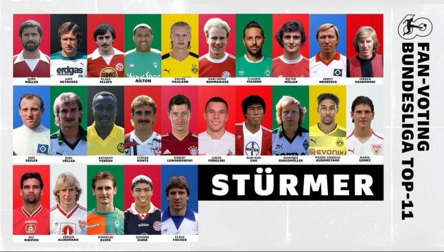 분데스리가 사무국은 22일(현지시간) 공식 홈페이지를 통해 분데스리가 최고의 공격수 후보 25인을 공개했다. 분데스리가는 창립 60주년을 맞아 '분데스리가 톱11'을 선정할 예정이다. 이는 팬들의 투표로 이뤄지며, 투표는 오는 9월까지 분데스리가 홈페이지를 통해 진행된다.