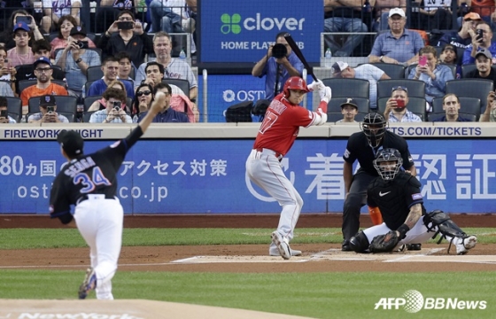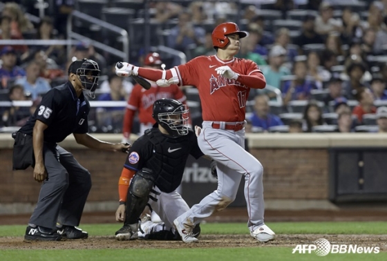 오타니는 26일(한국시간) 미국 뉴욕주 퀸스의 시티필드에서 열린 뉴욕 메츠와 2023 미국프로야구 메이저리그(MLB) 방문경기에서 2번 지명타자로 선발 출전해 2타수 1안타 3볼넷 1득점을 기록했다.