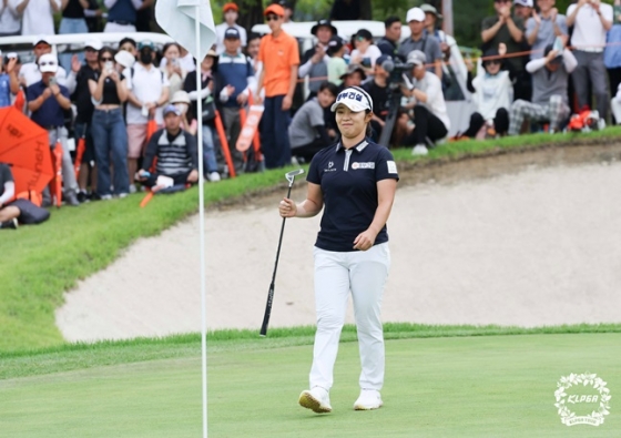 5번 홀(파3)에서 6m 가량 퍼트를 성공시키며 바운스백한 김수지는 7번 홀(파3)에선 196.6야드 티샷을 홀 코앞에 붙이며 한 타를 더 줄였다.