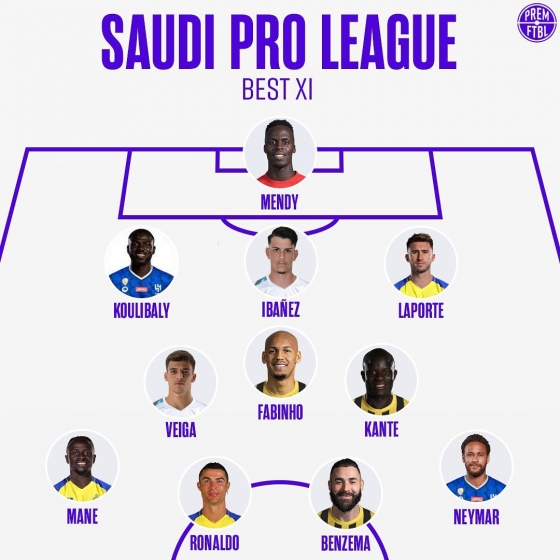 사우디아라비아 리그 베스트 11은 네이마르, 카림 벤제마, 크리스티아누 호날두, 사디오 마네가 공격을 구축했다.
