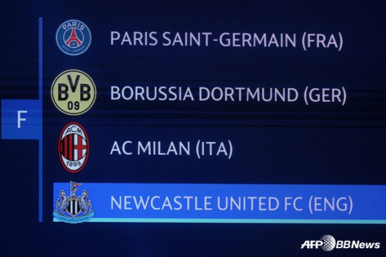 F조: 파리생제르맹(프랑스), 보루시아도르트문트(독일), AC밀란(이탈리아), 뉴캐슬(잉글랜드)