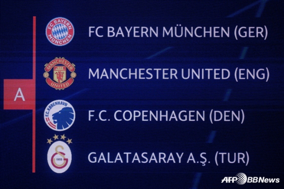 A조: 바이에른뮌헨(독일), 맨체스터유나이티드(잉글랜드), 코펜하겐(덴마크), 갈라타사라이(튀르키예)