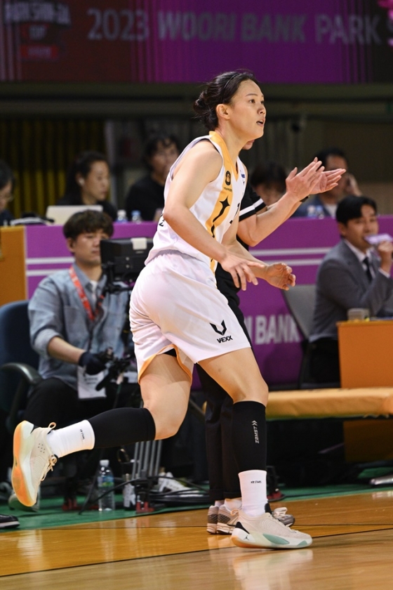 하지만 KB스타즈는 다음 공격에서 심성영이 3점슛을 터뜨려 빠르게 동점을 만들었다. 박지수도 득점을 추가해 전반을 32-30으로 끝냈다.