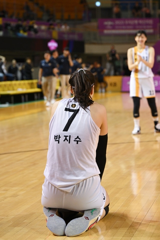 KB스타즈는 박지수의 마지막 슛이 림을 돌고 나와 아쉽게 승리를 놓쳤다.