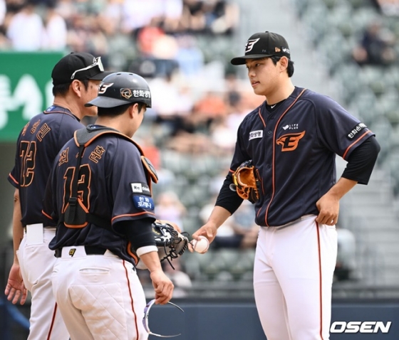 결국 한화 벤치는 교체를 택했다. 최고 시속 157㎞, 평균 145㎞ 속구를 58구 뿌렸고 커브(24구)와 체인지업(15구), 슬라이더(7구)와 커터(1구)까지 섞어 던졌으나 아쉬움이 크게 남았다.