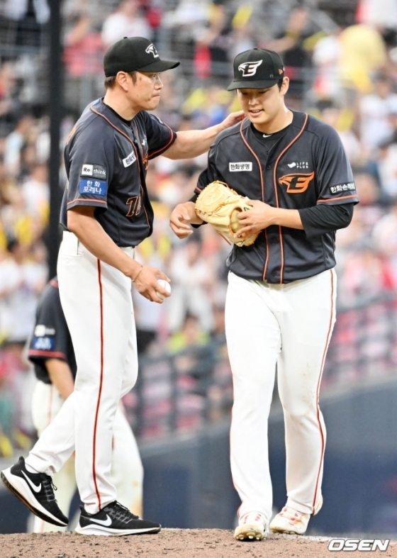 경기 전 만난 최원호 감독은 "100구 정도를 예상하고 있다. 경우에 따라서는 조금 더 혹은 덜 던질 수도 있다"며 "내일부터 서산(2군)으로 보낼 것이다. 오늘 던지면 아시안게임 전까지 회복할 시간도 충분할 것"이라고 말했다.