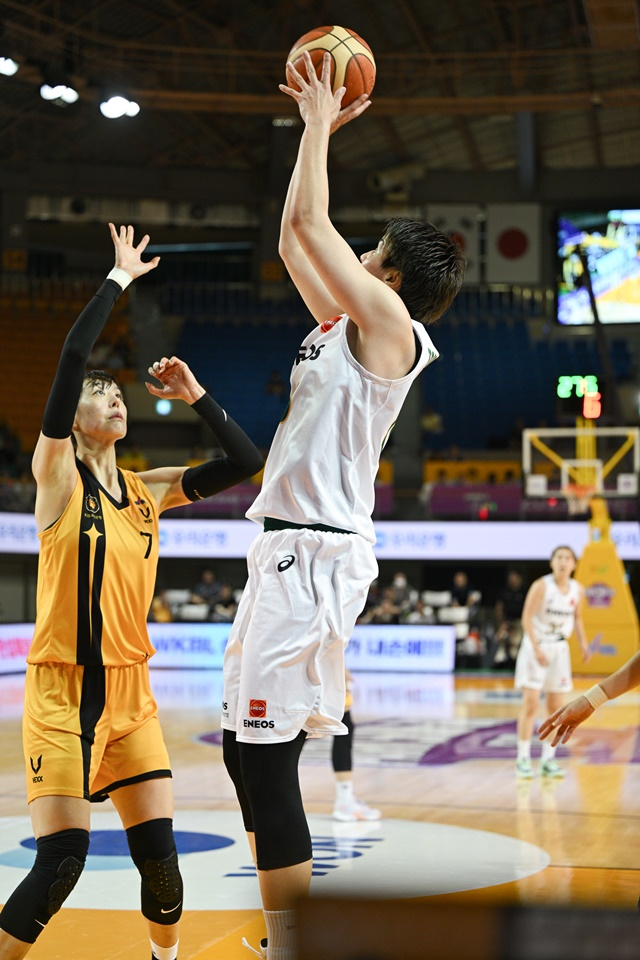 일본 최고 센터로 평가받는 에네오스의 토카시키 라무는 10점 6리바운드를 올렸다. 역시 14분 정도밖에 뛰지 않았다. 에네오스의 또 다른 에이스 오카모토가 3점슛 3개, 17점을 몰아쳐 KB 수비를 무너뜨렸다.