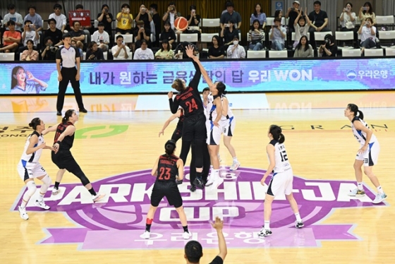 하지만 우리은행은 동점에 실패했다. 상대 공격이 다시 살아났다. 토요타는 190cm 장신 센터 우메자와의 골밑 활약을 앞세워 점수차를 벌렸다. 쿼터 1분여를 남겨놓고는 토요타의 야스마, 히라시타의 연속 3점슛이 터졌다. 반면 우리은행의 외곽슛은 좀처럼 터지지 않았다. 전반 점수도 36-49가 됐다.