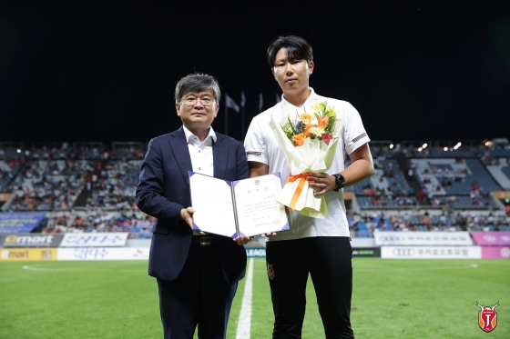 제주 구단에서도 이건우 코치의 선행을 치하하는 뜻 깊은 자리를 마련했다. 지난 3일 제주월드컵경기장에서 열린 하나원큐 K리그1 2023 29라운드 전북현대와 홈 경기 하프타임에 경기장을 찾아준 팬들 앞에서 이건우 코치에게 감사장 수여하는 시간을 가졌다. 구창용 대표이사가 직접 감사장을 전달했으며 사연을 들은 관중들은 뜨거운 박수를 보냈다.