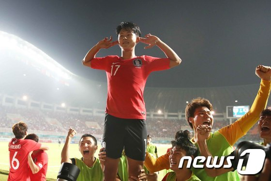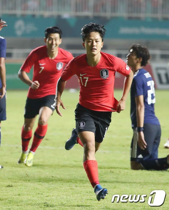 5년 전 팔렘방-자카르타 아시안게임 금메달 주역 이승우(25·수원FC)가 황선홍호 후배들에게 '기'를 불어넣었다.