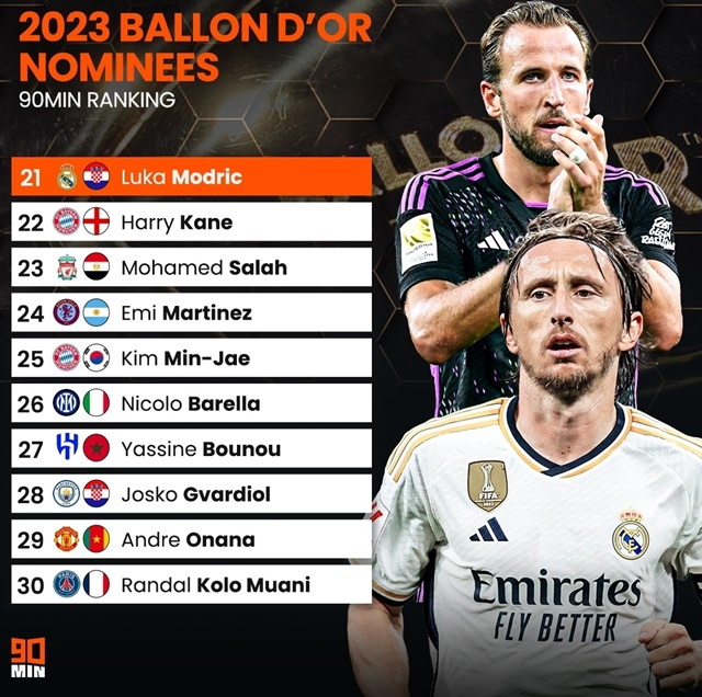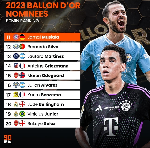 영국 축구전문매체 90MIN는 8일(한국시간) 2023 발롱도르 후보에 오른 30명의 예상 순위를 공개했다.