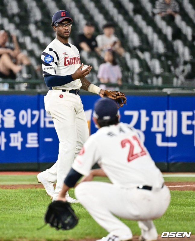 영입 초반만 해도 구드럼의 실책은 그다지 많지 않았다. 하지만 17번째 경기인 지난달 9일 고척 키움전을 시작으로 구드럼의 수비가 흔들리기 시작했다. 8월 26일 사직 KT전에서는 한 경기 3개의 에러를 저질렀고, 이후 4경기 연속 실책이라는 불명예 기록도 세웠다. 포구도 깔끔하다고 하긴 어렵지만 송구에서 안 좋은 모습을 노출하며 우려를 자아냈다.