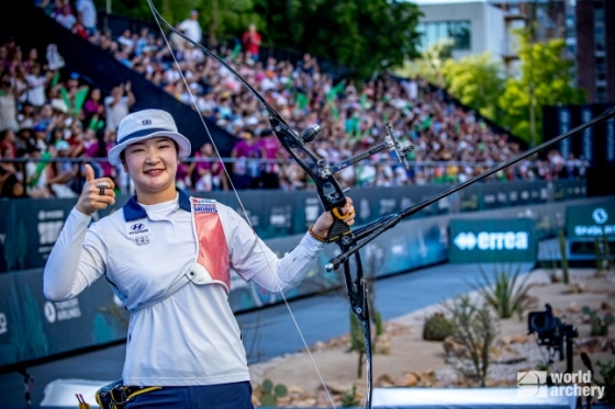지난 8월 있었던 있었던 2023 세계 양궁선수권대회 노메달의 아쉬움을 달랜 쾌거다. 안산, 강채영, 임시현으로 이뤄진 한국 여자 양궁대표팀은 8월 초 독일 베를린에서 열린 2023 세계선수권대회에서 개인전, 단체전에서 한 개의 메달을 따내지 못했다. 세계 최강으로 군림하던 여자 양궁 대표팀이 세계선수권에서 개인전 및 단체전에서 동메달도 수확하지 못한 것은 처음 출전한 1979년 베를린 대회 이후 44년 만의 흑역사였다. 하지만 맏언니 강채영이 파이널 우승으로 세계 대회에 대한 부담감을 이겨내면서 2022 항저우 아시안게임 전망도 밝혔다.