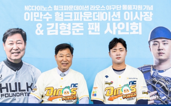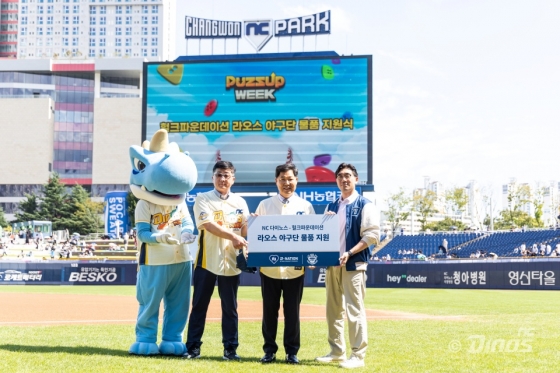NC 다이노스는 "지난 10일 롯데 자이언츠와 창원NC파크에서 열린 홈 경기에 앞서 헐크파운데이션 라오스 야구단 물품 지원 기념식을 열고 6000만원 상당의 선수단 용품을 전달했다"고 11일 밝혔다.