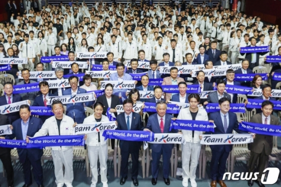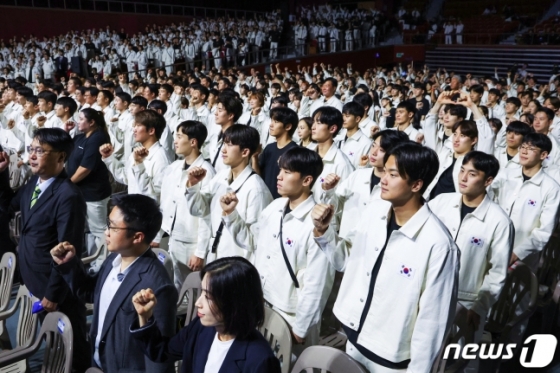 목표는 금메달 50개 이상, 최종 종합 순위 목표는 3위다. 한국 선수단이 2022 항저우 아시안게임을 앞두고 결단식을 개최한 뒤 선전을 다짐했다.