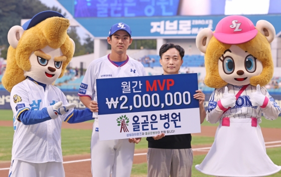 이날 올곧은병원 임경환 원장이 시상자로 나섰다. 구자욱에게는 소정의 상품권이 주어졌다.