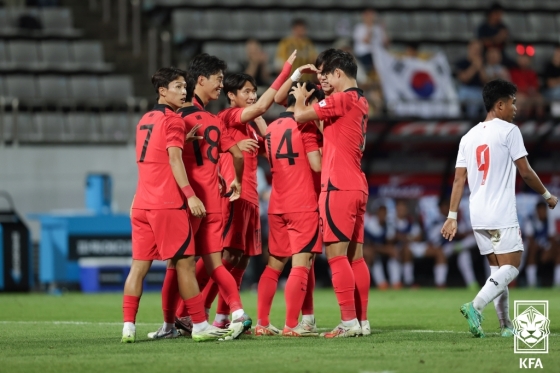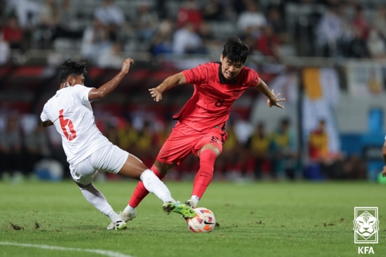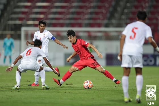 전반 초반부터 선제골을 넣었기에 한국으로서는 충분히 대량 득점에 이은 승리를 기대할 법도 했다. 하지만 이 골을 넣은 뒤 한국은 좀처럼 미얀마의 밀집 수비를 뚫지 못했다. 정상빈과 엄지성이 수시로 측면에서 미얀마 수비진을 흔들었지만, 중앙 지역에서 결정적인 마무리로 연결하지 못했다.
