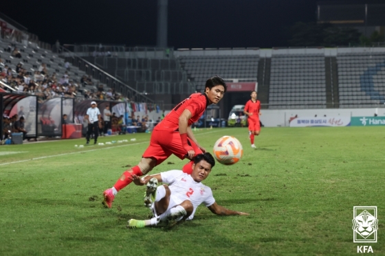 이제 경기가 후반 40분대로 접어든 가운데, 두드리면 열린다고 했던가. 마침내 한국의 추가골이 터졌다. 오재혁의 깔끔한 침투 패스를 받은 정상빈이 페널티 박스 왼쪽에서 짧게 크로스를 올렸다. 이를 문전으로 쇄도하던 전병관이 슬라이딩 슈팅으로 연결해 미얀마의 골망을 흔들었다. 한국이 2-0 리드를 잡는 순간이었다.