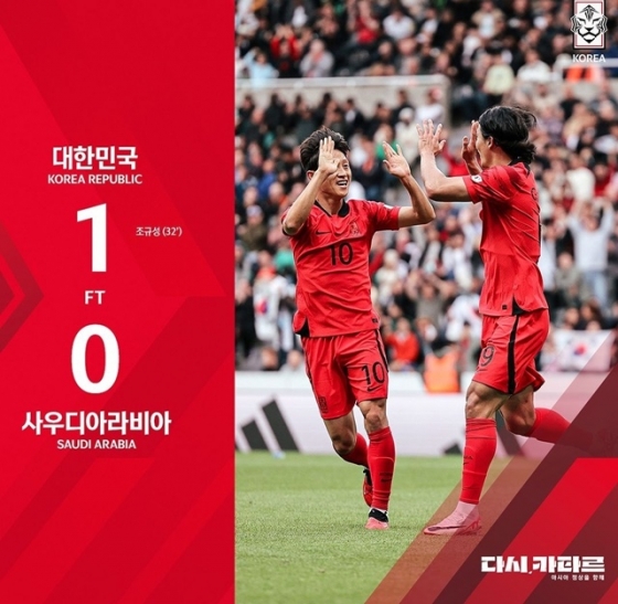 위르겐 클린스만(독일·59) 감독이 이끄는 한국은 13일 오전 1시30분(한국시간) 영국 뉴캐슬의 세인트 제임스 파크에서 열린 같은 아시아 국가 사우디아라비아와 A매치 평가전에서 1-0 승리를 거뒀다.