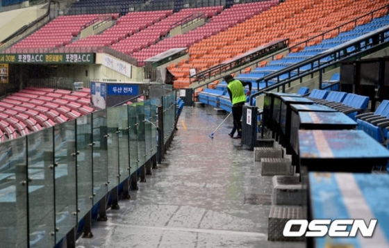 이날 오전부터 서울에 비가 쏟아지기 시작했다. 잠실구장 내야엔 방수포가 깔렸지만 외야 잔디 부분과 워닝트랙 흑엔 웅덩이가 생겨났다. 시간이 흘러도 빗줄기는 잠잠해지지 않았고 경기감독관은 평소보다 빠르게 우천취소를 결정했다.