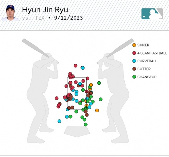 류현진은 13일(한국시간) 캐나다 온타리오주 토론토의 로저스 센터에서 열린 텍사스 레인저스와 2023 미국프로야구 메이저리그(MLB) 홈경기에 선발 등판해 6이닝 동안 82구만 던지며 5피안타 1볼넷 5탈삼진 3실점을 기록했다.