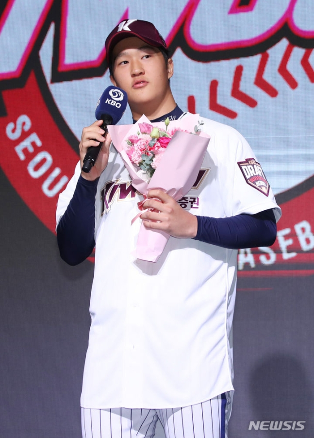 '코리안 특급' 박찬호의 조카로도 유명한 김윤하는 함께 지명된 장충고 동기들을 두고 "프로에서는 경쟁상대니까 앞으로 절대 봐주지 않겠다"고 당찬 포부를 밝혔다. 현장을 찾은 장충고 5인 중 마지막으로 호명된 원종해는 "내 이름만 불리지 않아 많이 긴장했는데 좋은 팀을 가게 돼 좋다. NC에 감사하다"고 미소 지었다.
