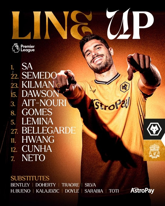 울버햄튼은 4-3-3 포메이션을 들고 나왔다. 황희찬과 마테우스 쿠냐, 페드루 네투가 공격 삼각편대를 구성했고 주앙 고메스, 마리우 레미나, 장-리크너 벨가르데가 중원을 이뤘다. 백4는 넬슨 세메두, 막스 킬먼, 크레이그 도슨, 라얀 아이-누리가, 골키퍼는 조세 사가 맡았다.
