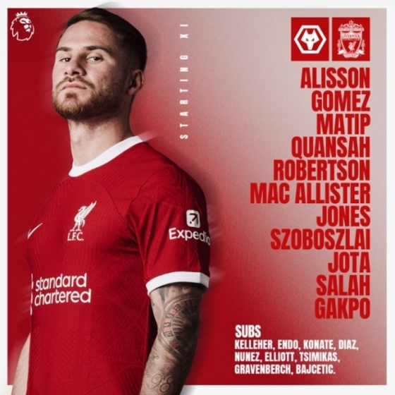 리버풀 또한 4-3-3 전형으로 맞섰다. 코디 학포를 중심으로 좌우에 디오구 조타, 모하메드 살라가 배치됐고 커티스 존스와 알렉시스 맥앨리스터, 도미니크 소보슬러이가 뒤를 받쳤다. 수비라인은 앤드류 로버트슨과 조 고메스, 조엘 마팁, 자엘 콴사가, 골키퍼 장갑은 알리송 베커가 꼈다.