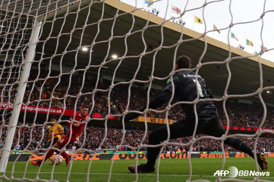 리버풀 골키퍼 알리송 베커가 황희찬의 슈팅을 잡았으나 이미 공은 골라인을 넘어간 뒤였다. 황희찬은 펄쩍 뛰어올라 기쁨을 만끽했다.