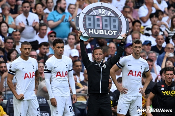 이날 토트넘은 경기를 주도했지만 후반 29분 구스타보 하머의 왼발슛이 골대를 맞고 빨려 들어가면서 선제 실점을 허용했다. 다급해진 엔제 포스테코글루 감독은 후반 35분 최전방 스트라이커 손흥민과 왼쪽 측면 공격수 마노르 솔로몬을 빼고 히샬리송과 이반 페리시치를 동시에 투입하며 승부수를 띄웠다.