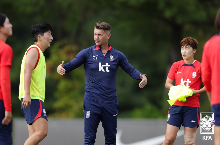 여자 대표팀은 이날 오전 10시부터 1시간 20분 가량 훈련을 진행했다. 벨 감독은 반코트 미니 게임을 통해 빌드업에 초점을 맞춘 훈련을 진행했다.