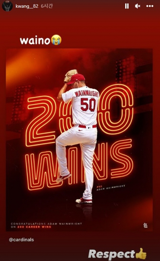 김광현이 세인트루이스에 진출해 신종 코로나바이러스 감염증(코로나19)로 힘겨워 할 때 훈련 파트너가 돼 주며 적응을 도왔던 일화는 국내 팬들에게도 잘 알려져 있다. 김광현은 그의 200승 소식에 자신의 사회적관계망서비스(SNS)를 통해 그의 사진을 올리며 'waino(웨인라이트의 별명), respect(존경한다)'고 글을 올리며 축하의 뜻을 전했다.