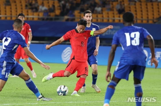 백승호, 박진섭과 함께 와일드카드로 선택된 설영우(울산)는 벤치에서 경기를 시작한다. 최근 A대표팀에도 발탁돼 2경기를 모두 소화한 터라 황선홍 감독은 첫 경기는 무리하지 않도록 배려했다.