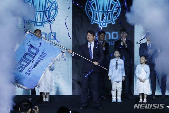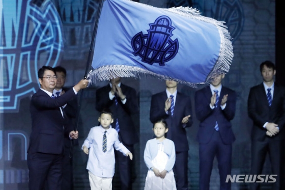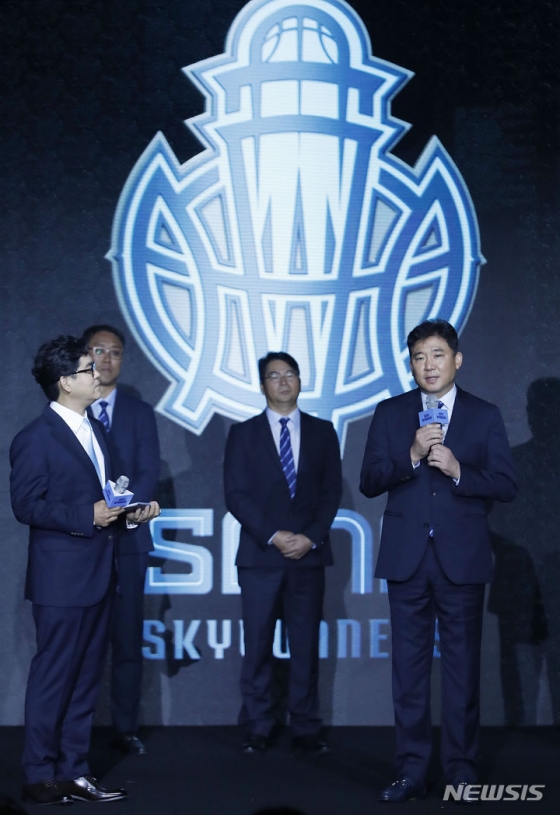 고양 소노 스카이거너스 창단식이 20일 오전 고양 소노캄 그랜드볼룸에서 개그맨 김용만의 사회로 진행됐다. 소노 선수단과 김승기 감독, 서준혁 소노인터내셔널 회장, 김희옥 KBL 총재, 이동환 고양특례시장 등 내빈이 참석했다.