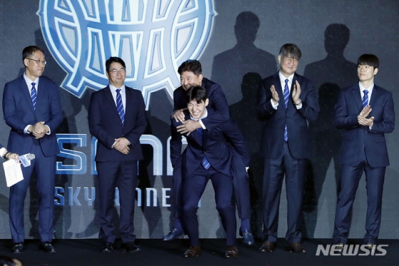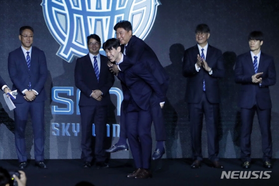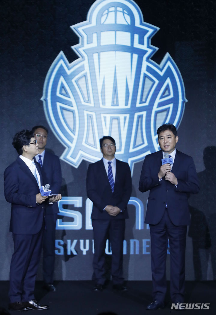 대포를 형상화한 소노 엠블럼 공개에 이어 선수들과 코치진이 소개됐다. 선수들은 멋진 수트 차림으로 무대에 올랐다.