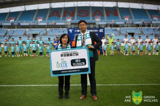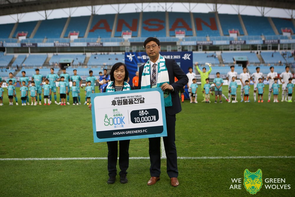 [스포탈코리아] 한재현 기자= 안산그리너스가 친환경 숙취 해소 브랜드 ‘쏘콕’을 운영하는 ㈜티플로우(이하 티플로우)와 후원 물품 전달식을 가졌다.