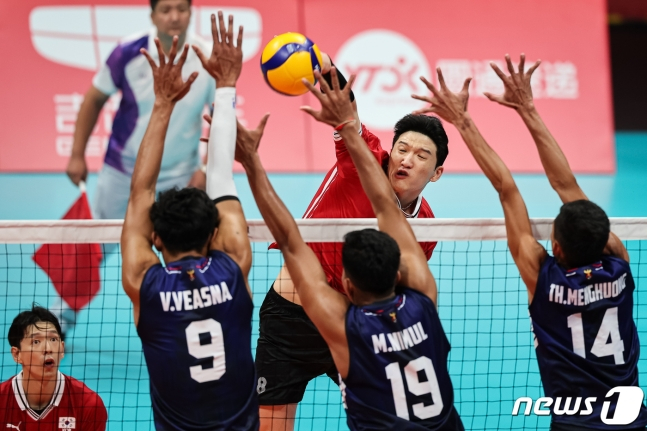 임도헌 감독이 이끄는 세계 27위 한국은 21일 중국 항저우 린핑 스포츠센터체육관에서 열린 캄보디아와 2022 항저우 아시안게임 남자 배구 C조 조별리그 2차전에서 세트스코어 3-0(25-23, 25-13, 25-15)으로 셧아웃 승리를 거뒀다.