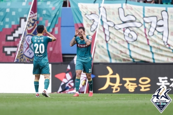전반 36분 대전이 한 골 더 넣어 2-0으로 달아났다. 유강현이 감격적인 이적 후 첫 골을 터뜨렸다. 유강현은 지난 시즌 K리그2 득점왕을 차지한 뒤 대전으로 팀을 옮겼다. 하지만 계속 골을 넣는데 실패해 힘든 시간을 보냈다. 19경기 무득점이었다. 도움은 2개를 올렸지만, 골이 없었다.