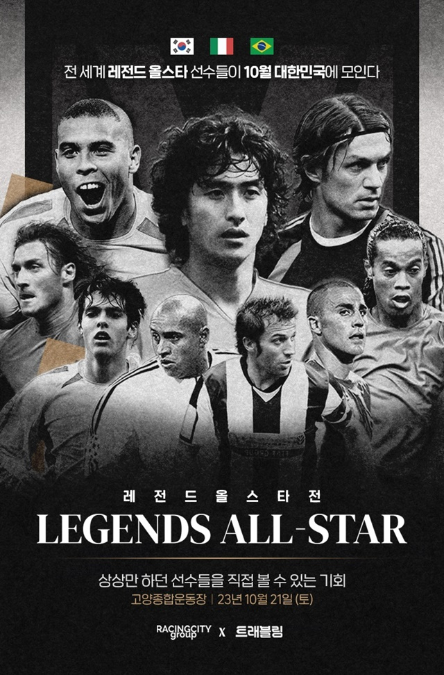 라싱시티 코리아는 24일 이같은 소식과 함께 "내달 21일 토요일 고양종합운동장에서 대한민국·브라질·이탈리아 3개국 레전드 들이 참가하는 올스타전이 열린다. 킥오프 시간은 오후 5시 30분"이라며 "제 1경기는 대한민국과 이탈리아, 제 2경기는 브라질과 대한민국, 제 3경기는 이탈리아와 브라질 순으로 진행된다. 각 경기는 전·후반 20분 씩 총 40분으로 치러진다"고 소개했다.