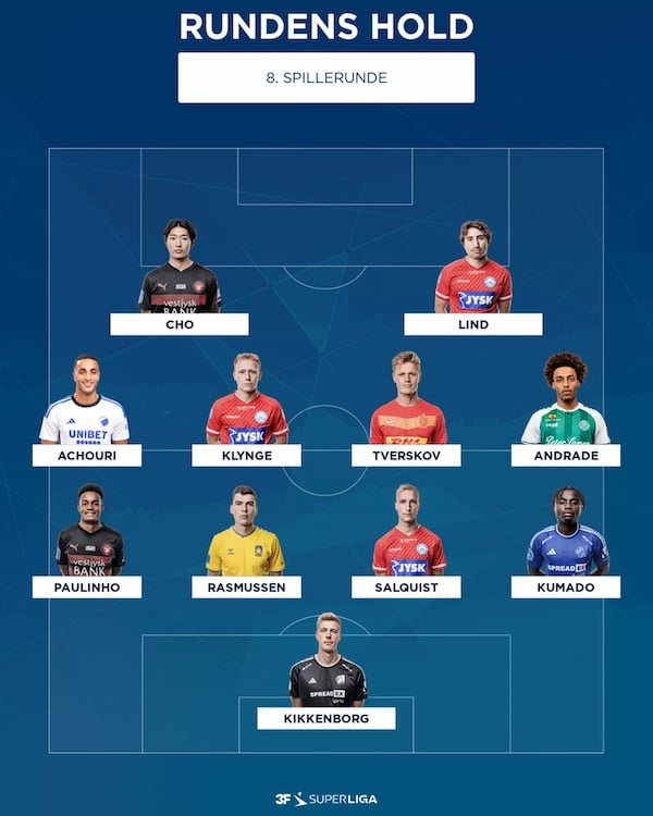 경기 후 덴마크 수페르리가 사무국은 지난 19일(한국 시간) 공식 홈페이지를 통해 리그 8라운드 팀을 공개했다. 조규성이 여기에 이름을 올렸다. 이번 경기에서도 득점포를 가동하며 리그 2경기 연속골을 만들었다.