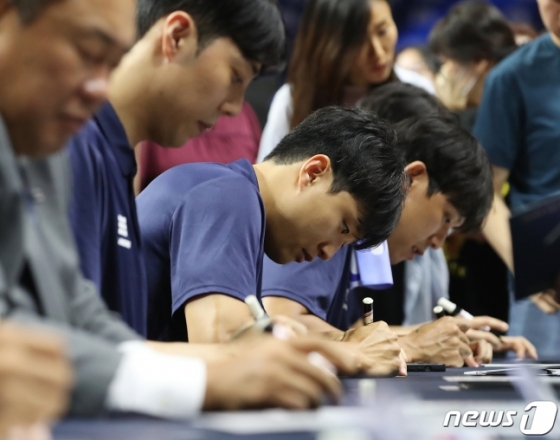 이어 선수들의 팬 사인회가 열렸다. 행사장을 찾은 팬들은 스타군단 KCC 선수들의 사인을 받기 위해 긴 줄을 서서 기다렸다.