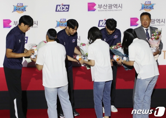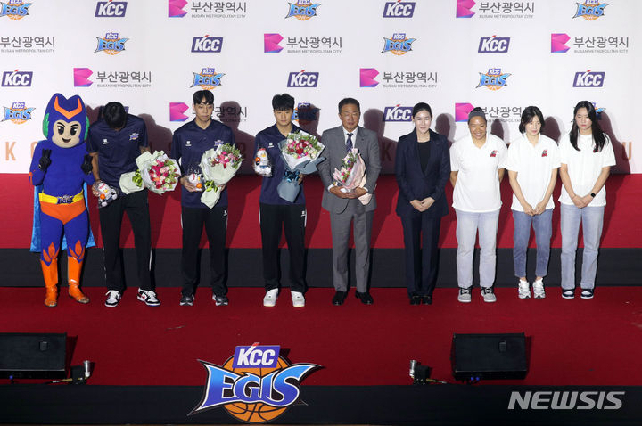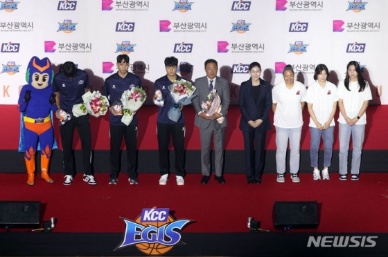 KBL 부산 KCC 이지스는 25일 오후 2시 30분 부산 사직실내체육관에서 부산광역시와 연고지 협약식 및 2023~24시즌 출정식을 진행했다. 이날 행사에는 WKBL 부산 BNK 썸 김성주 구단주와 박정은 감독을 비롯한 선수단도 참석해 축하 인사를 전했다.