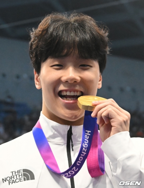 이유찬의 금빛 소식이 동료들에게도 힘이 됐을까. 한국은 이어진 남자 계영 800m에서도 중국의 벽을 넘어 아시아신기록을 갈아치우며 금메달을 차지했다. 중국은 판잔러와 왕하오위 등 에이스들을 전면에 내세우고도 한국에 다시 한 번 덜미를 잡혔다.