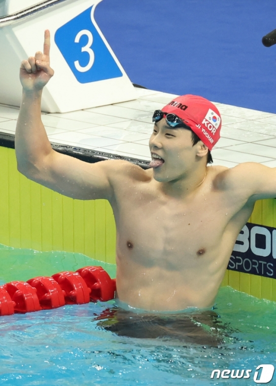 대회 신기록까지 갈아치운 지유찬은 이번 대회 한국 수영에 첫 금메달을 안겼다. 이 종목에서 한국 선수의 우승은 2002년 부산 대회 김민석(공동 1위) 이후 무려 21년 만이다.