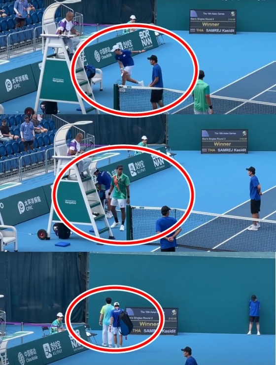 그래도 화가 풀리지 않았는지 권순우는 짐을 챙기다가도 다시 한 번 라켓을 집어들어 코트에 내리쳤다.