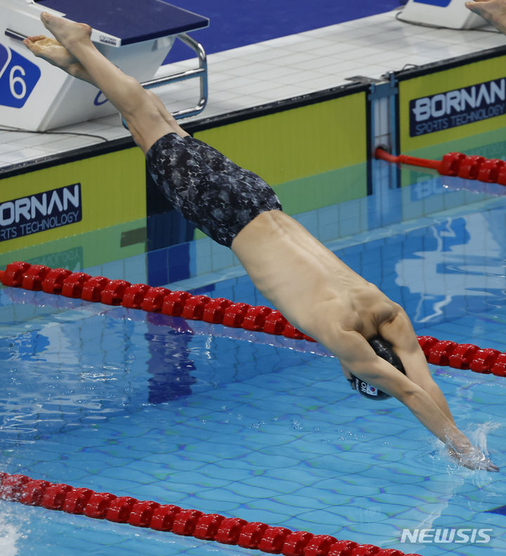 결승 무대 황선우는 4번 레인에서 준비했다. 3번에 이호준(22·대구광역시청), 5번에 마노가 자리했다. 50m 부터 계속 1위를 지킨 황선우는 1분44초40으로 1위를 차지했다.