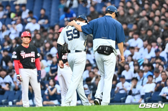 그런데 이때 구창모가 팔을 들어 사인을 보냈다. 어두운 표정을 지은 구창모는 공을 쥔 왼손이 떨리고 있었다. 무언가 이상징후가 나온 게 분명했다. 코칭스태프와 대화를 나눈 후 결국 구창모는 마운드를 내려가고 말았다. 그는 얼굴을 찡그리며 괴로워하며 더그아웃으로 돌아갔다. 결국 병원으로 향한 구창모는 청천벽력과도 같은 '재골절' 진단을 받았다.