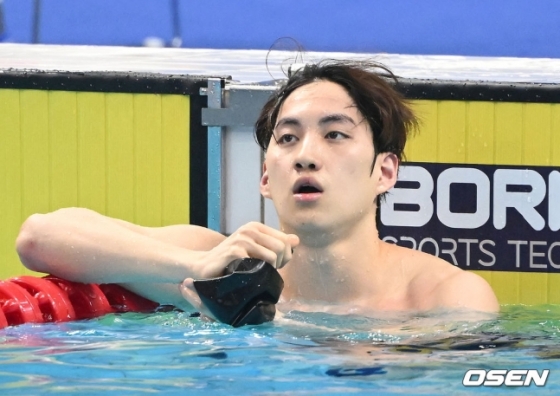 자신감 넘칠 만한 이유가 있다. 이날 기록에서도 보듯이 김우민은 자유형 400m 아시아 최고 선수다.