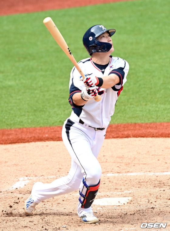 이날 한국은 선발 라인업에 소폭 변화를 줬다. 타순엔 조금 변화를 줬다. 김혜성(2루수)-최지훈(중견수)이 전날과 같이 테이블 세터진을 꾸렸고 전날 3안타의 주인공 윤동희(우익수)가 노시환(3루수)-문보경(1루수)과 함께 중심 타선을 구축했다. 4타수 무안타에 그쳤던 강백호(지명타자)는 6번으로 내려갔다. 김주원(유격수)과 김동헌(포수)이 박성한과 김형준 대신 나섰고 김성윤(좌익수)은 전날과 같이 9번 타순에 배치됐다. 선발 투수는 나균안.